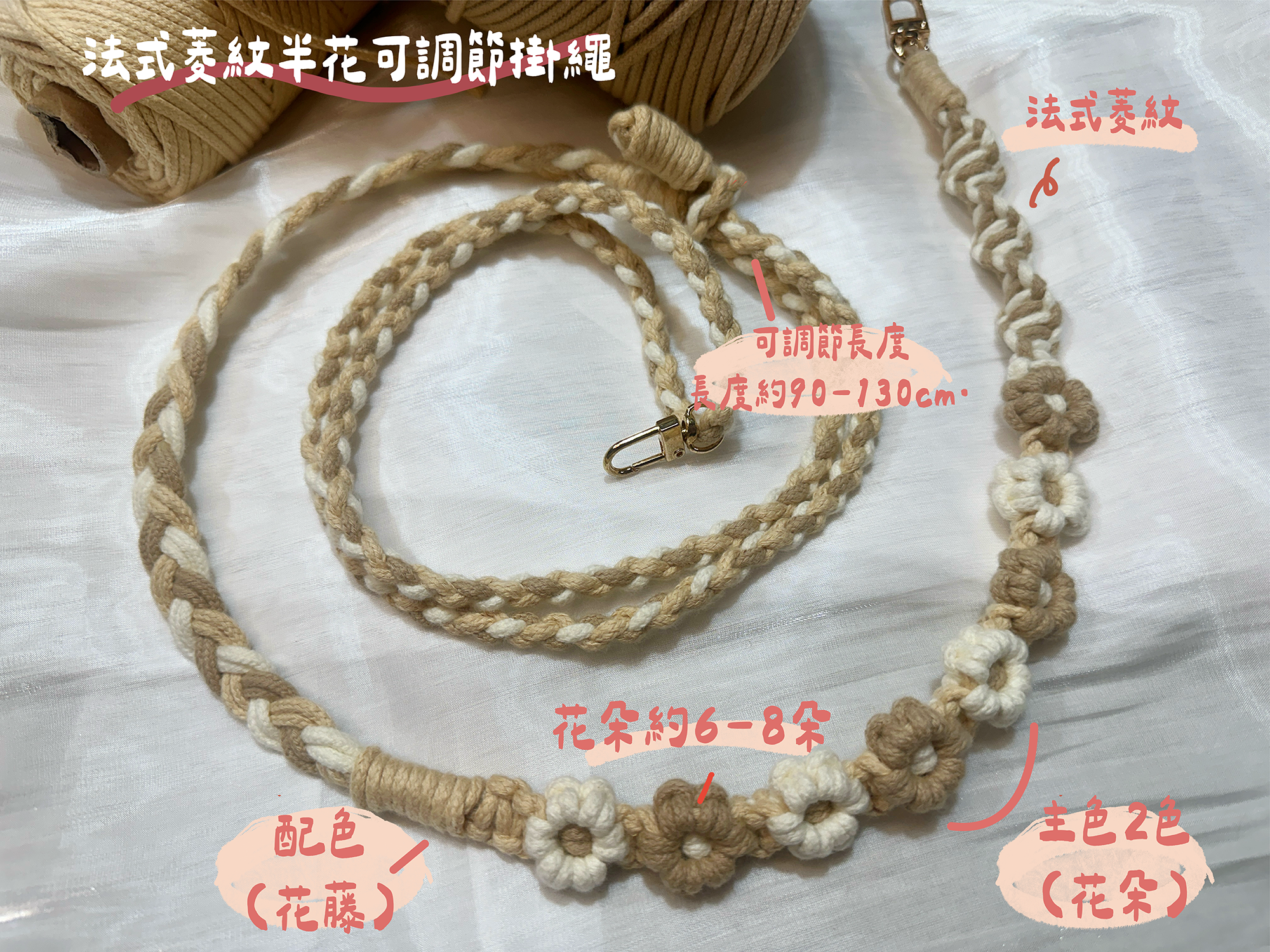 ❁ 法式菱紋半花可調節掛繩