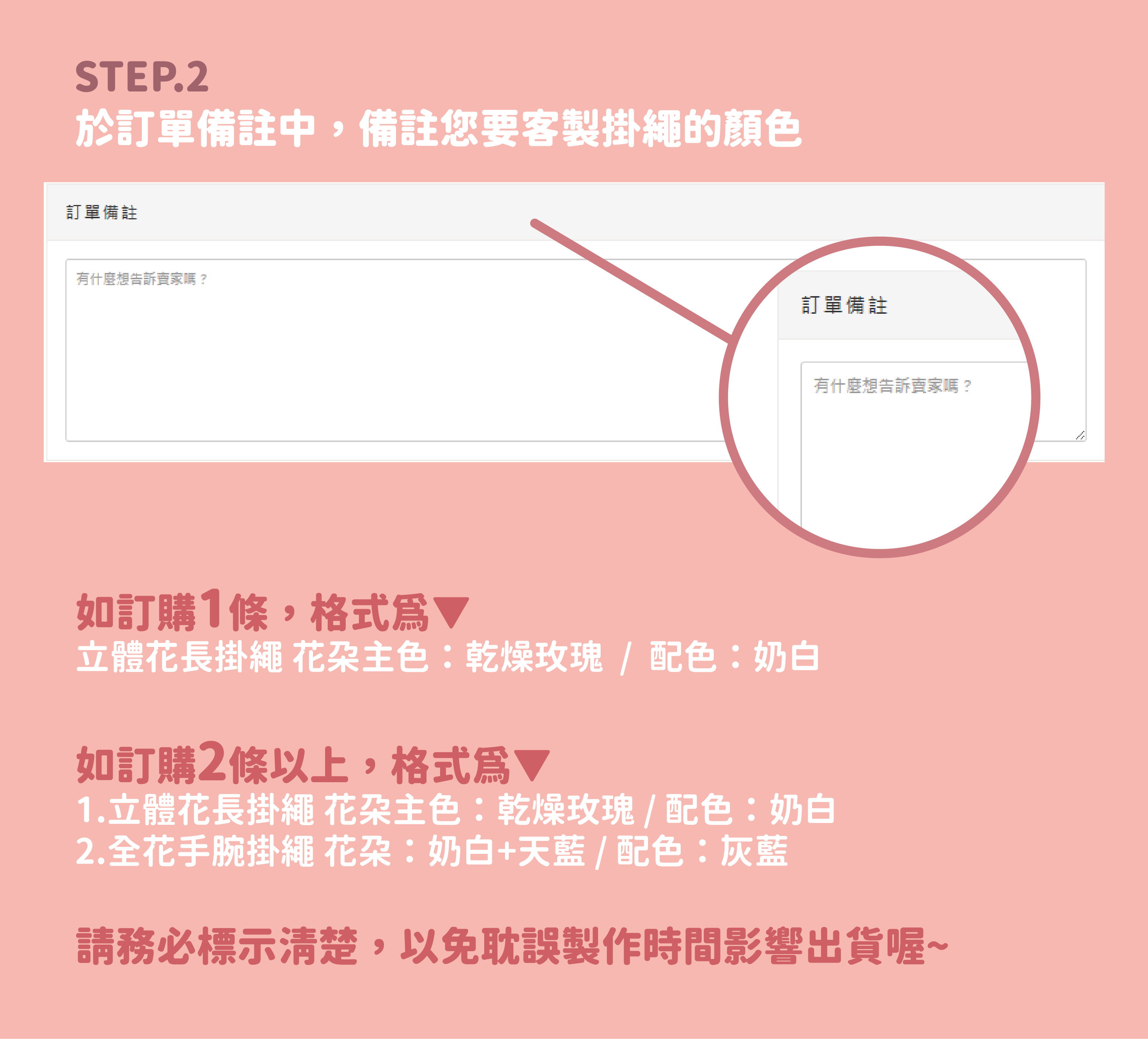 ▲下單時請務必將客製化的顏色寫在訂單備註裡,無正確標示的話會影響製作延後出貨喔~